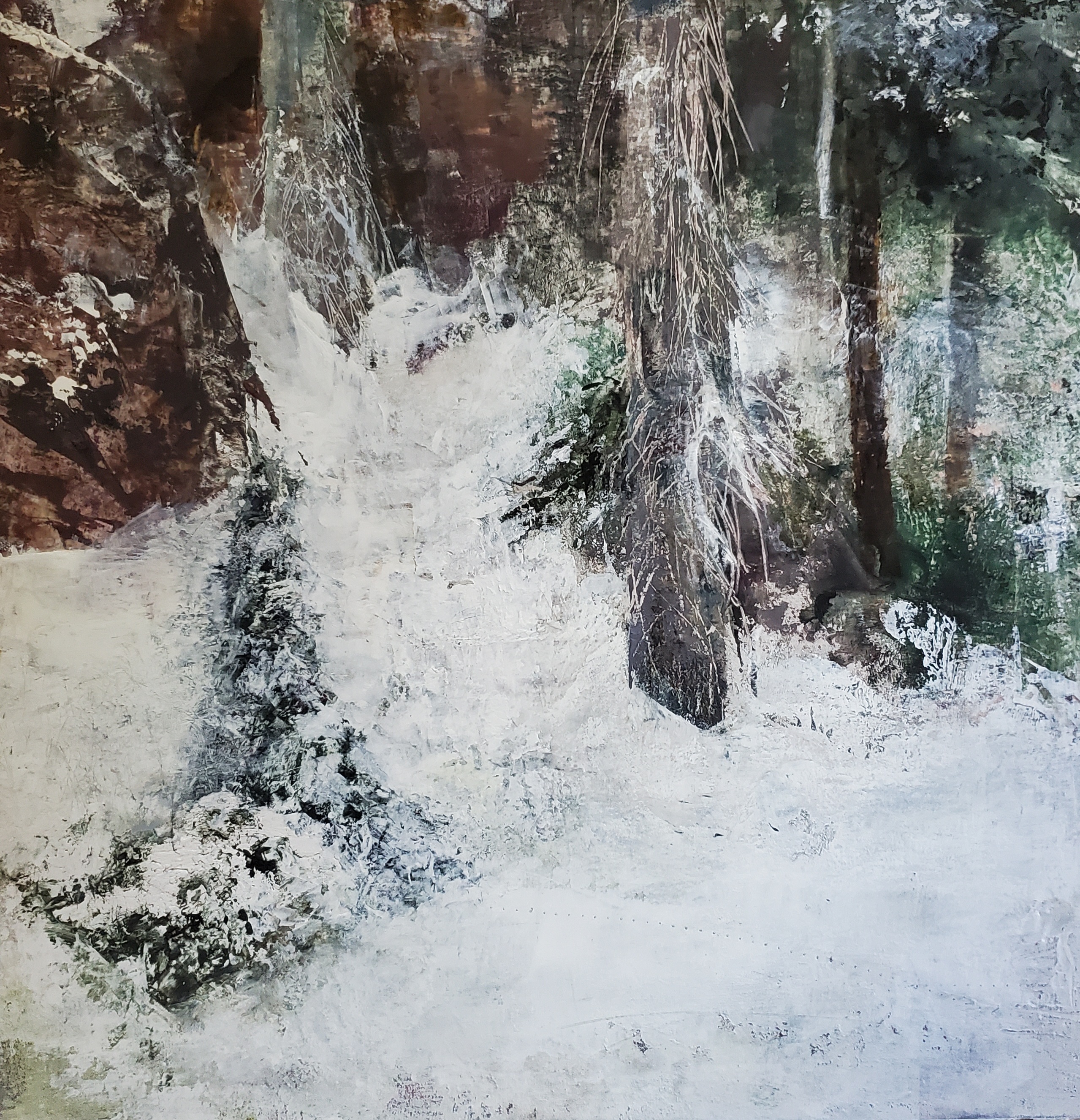 Into The Pathless Woods, 12×12 inches, oil/cwm on board, framed