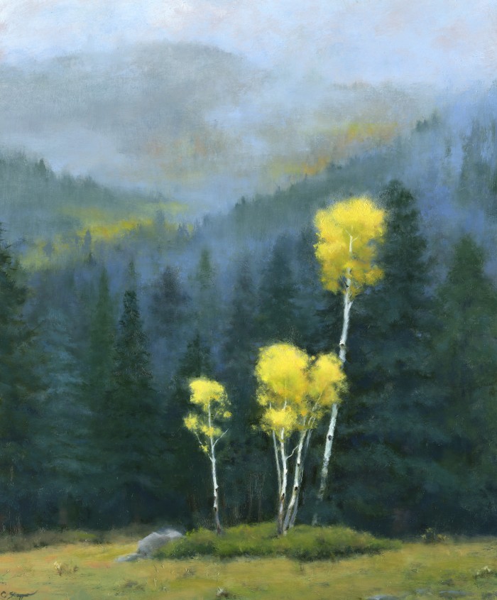 Aspens In The Mist, 16 x 20 inches, oil on cradled clayboard 2013 Cindy Stapper