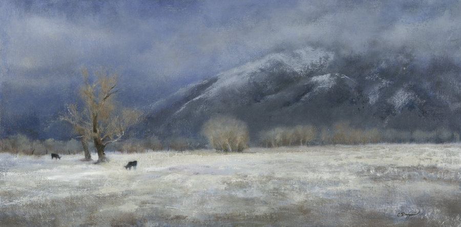 Taos Mountain Winter, 12 x 24 inches, oil on muslin board 2013 Cindy Stapper