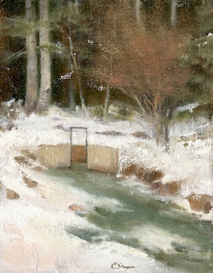 Winter Gate, 7 x 9 inches, oil on linenboard 2014 Cindy Stapper