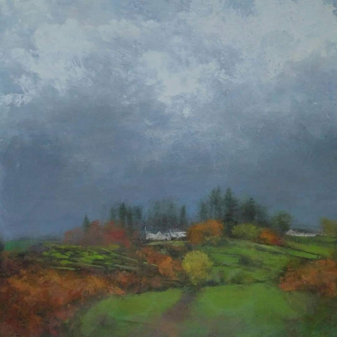 Veiled Hill, 12 x 12 inches, oil, cold wax, peat ash on cradled board (c) 2019 Cindy Stapper