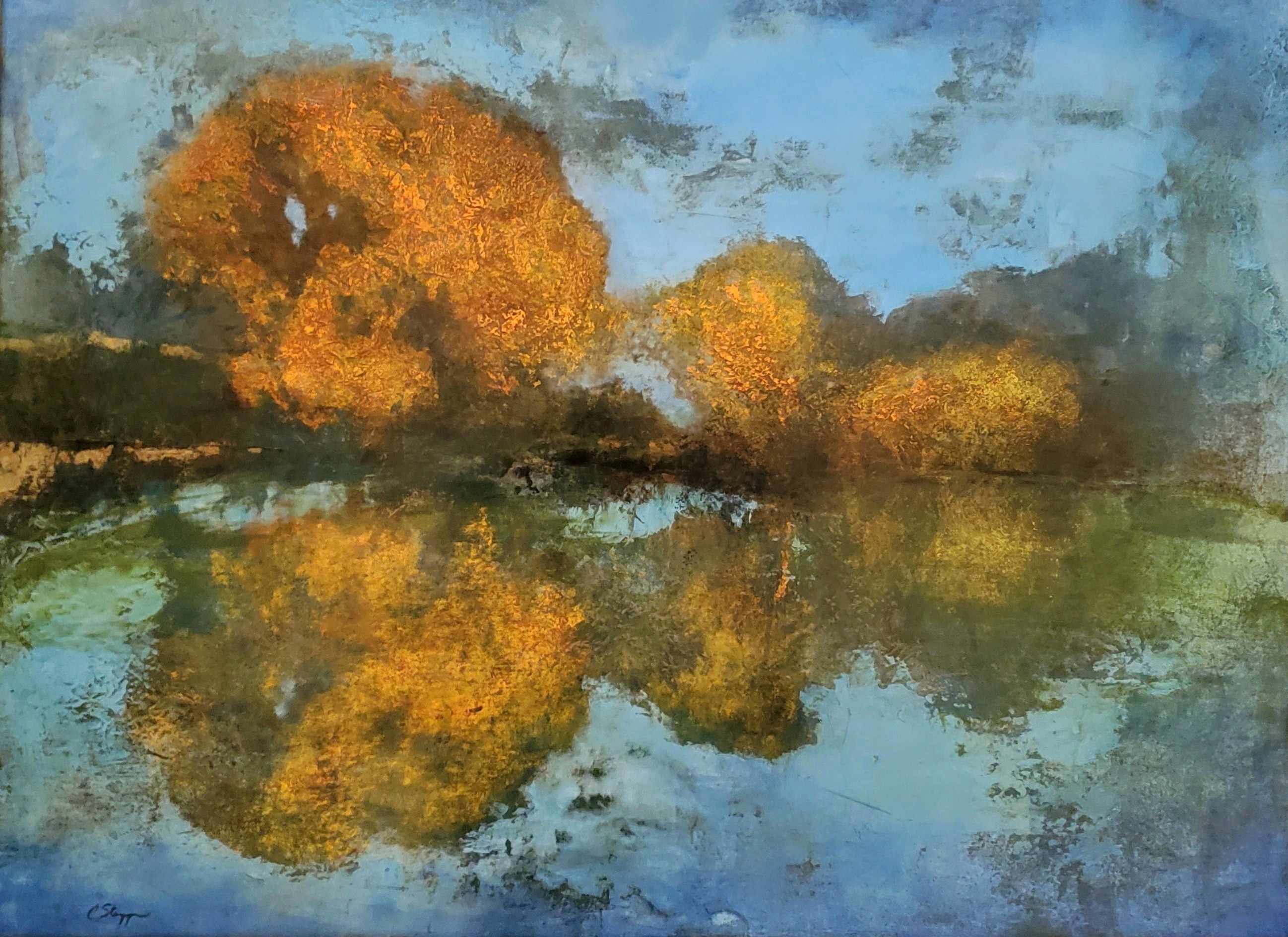 Twin Lakes Morning, oil/cwm on board, 18×24 inches, 25×31 inches framed