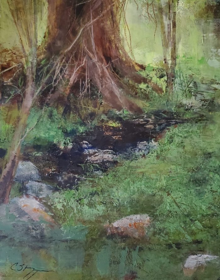 Willow Water, 8×10 inches, oil/cwm on board, framed